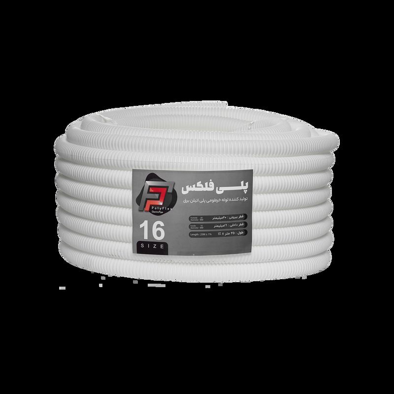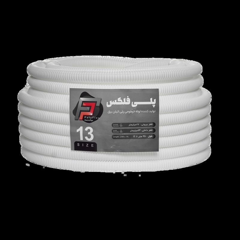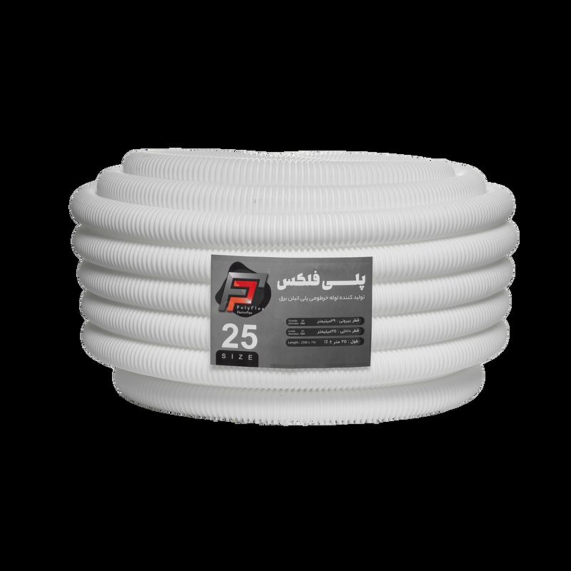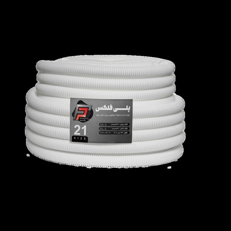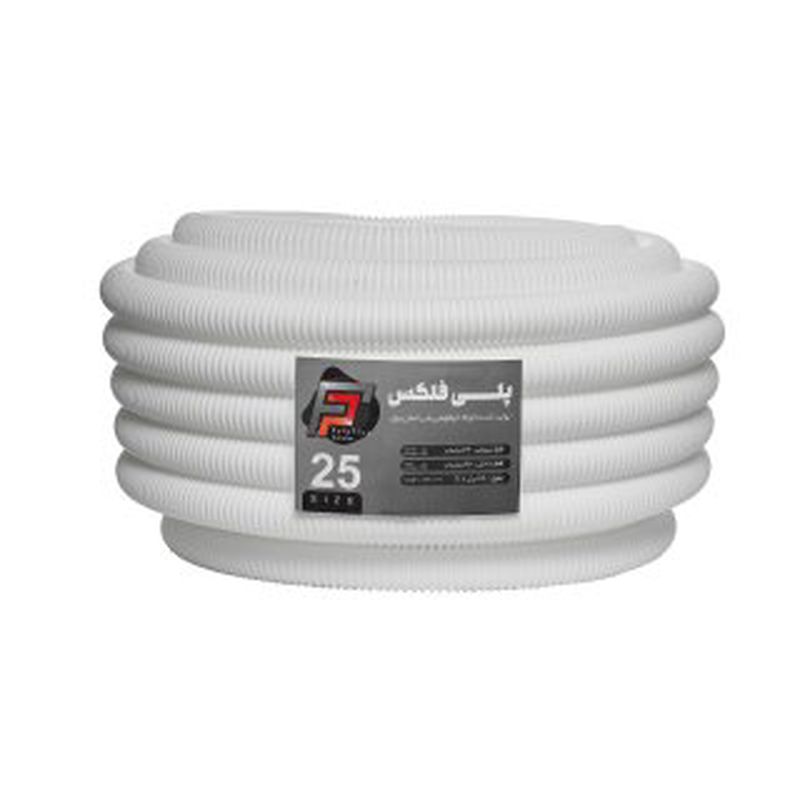 پلی فلکس – لوله خرطومی پلی اتیلن پلی فلکس (Poly Flex)؛ انعطافپذیر، مقاوم در برابر آب و اشعه UV، مناسب برای کابلکشی برق، دوربین مداربسته و شبکه. موجود در سایزها و رنگهای متنوع — بستهبندی حلقهای 25 متری.